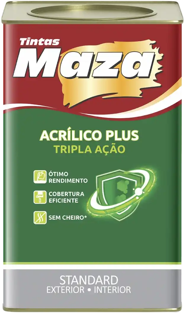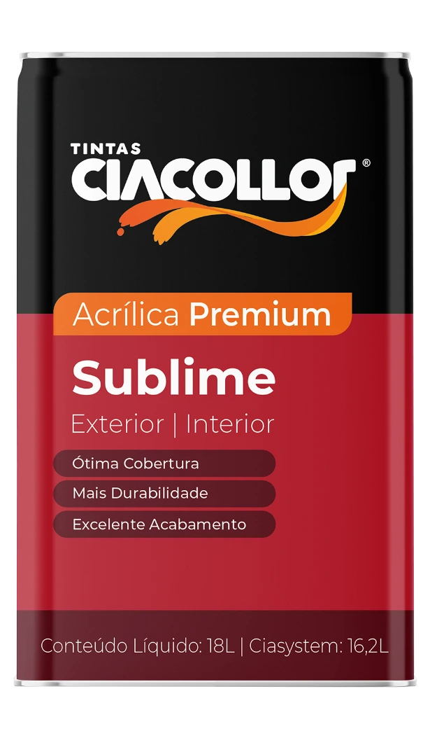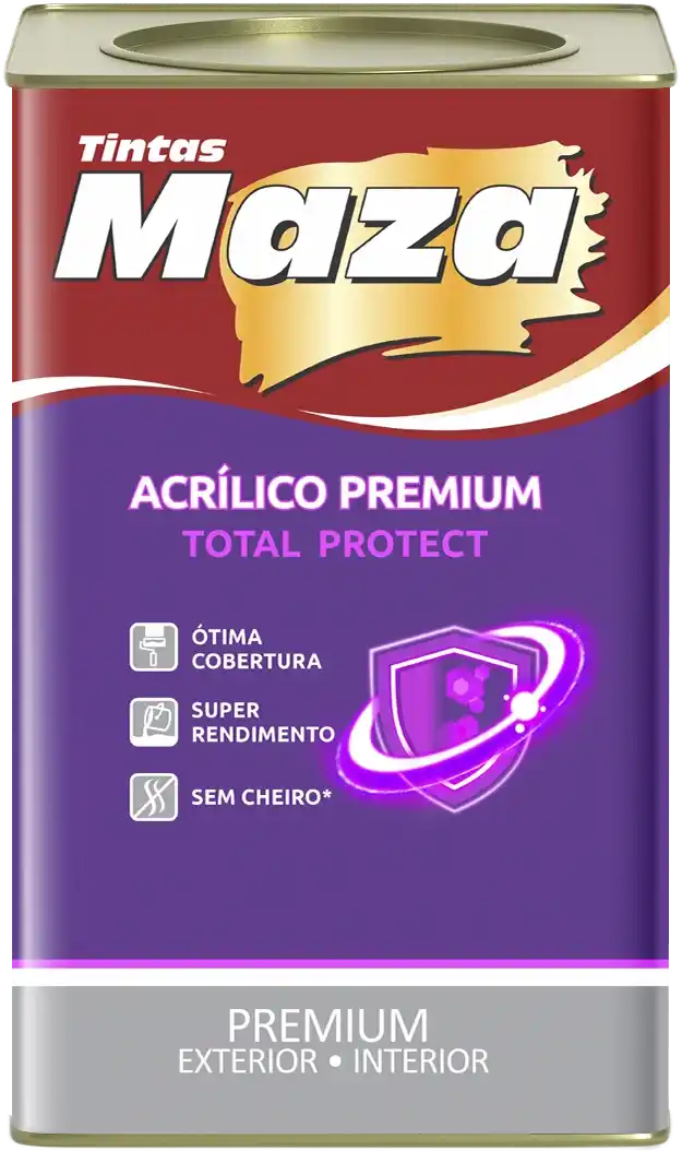 A tinta de Parede Acrílica premium com 3 acabamentos: fosco, acetinado, semi-brilho, indicada para pintura de exteriores.